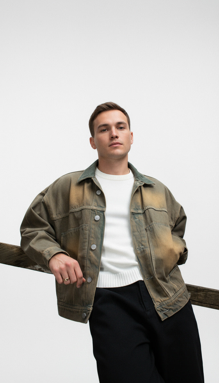 La Chaqueta Unisex Tono DirtY es una pieza creada para quienes visten sin etiquetas ni moldes. Su acabado azul con matices dirty en tono amarillo prelavado crea un efecto visual único: una mezcla entre desgaste artístico y textura viva, característica de la línea Morphosis.