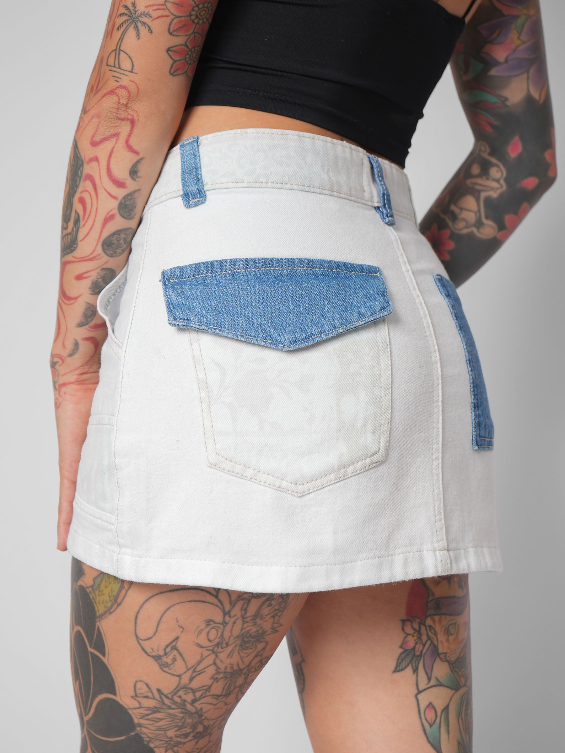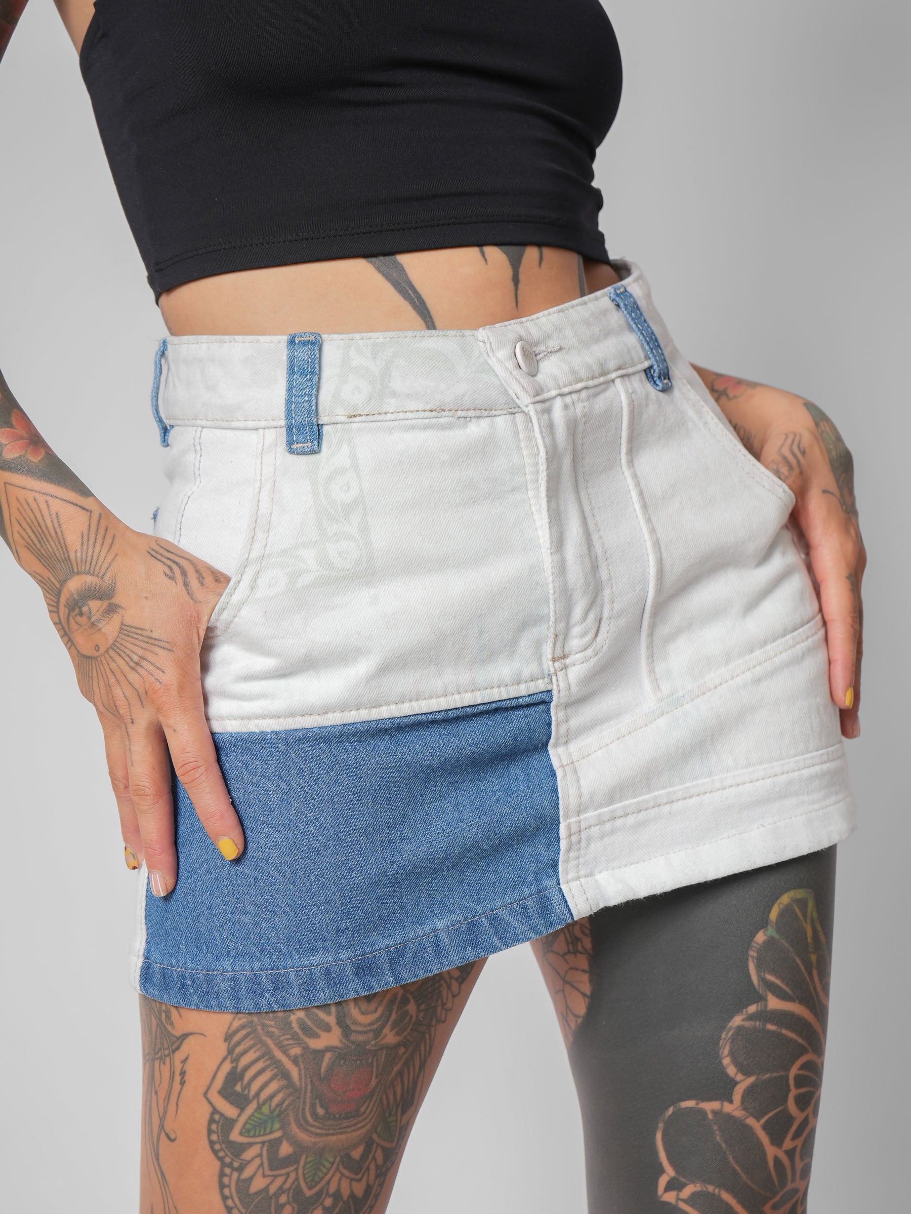 La geometría del cambio convertida en movimiento. La Tryada es una falda de corte alternativo que combina simetría y rebeldía en una sola prenda. Diseñada para fluir con poder, su silueta firme y su estética geométrica evocan transformación constante, ya sea en conjunto con la chaqueta Tryada o como pieza protagonista en solitario.